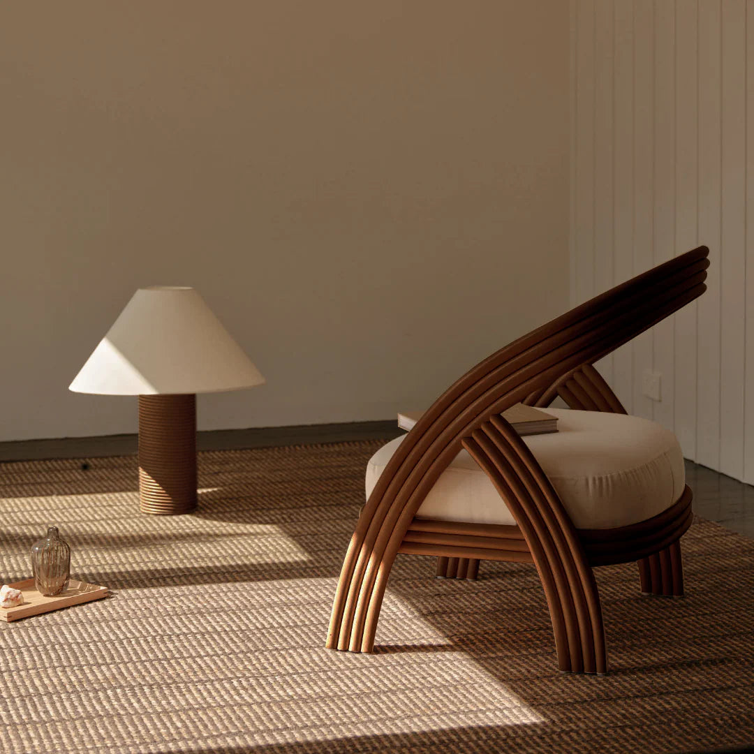 The Claude Light by McMullin is designed to enhance any space, whether beside your bed or within your living area. Handcrafted with meticulous attention, this light celebrates the natural imperfections of cane, adding a warm and inviting ambience to any room.