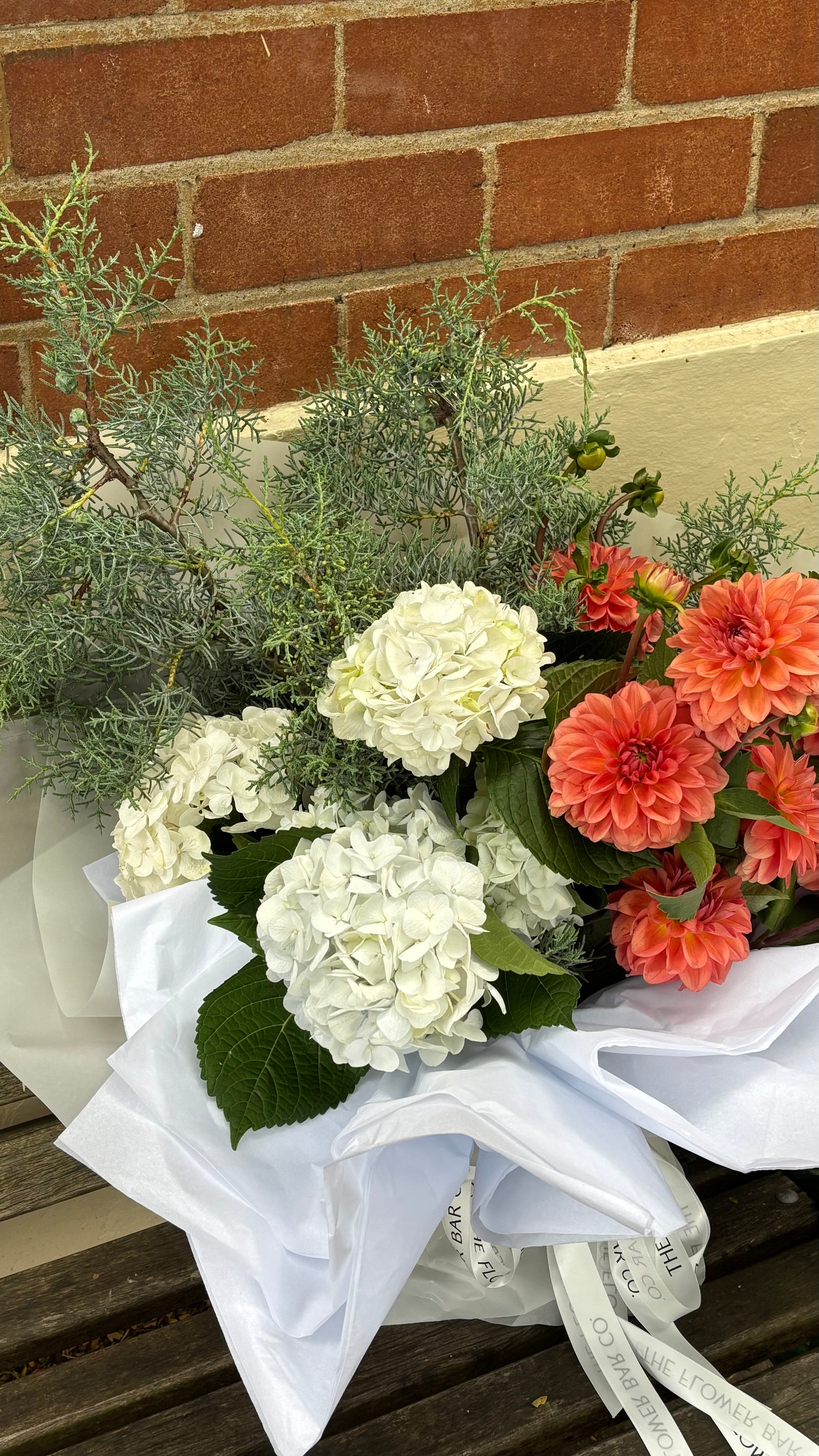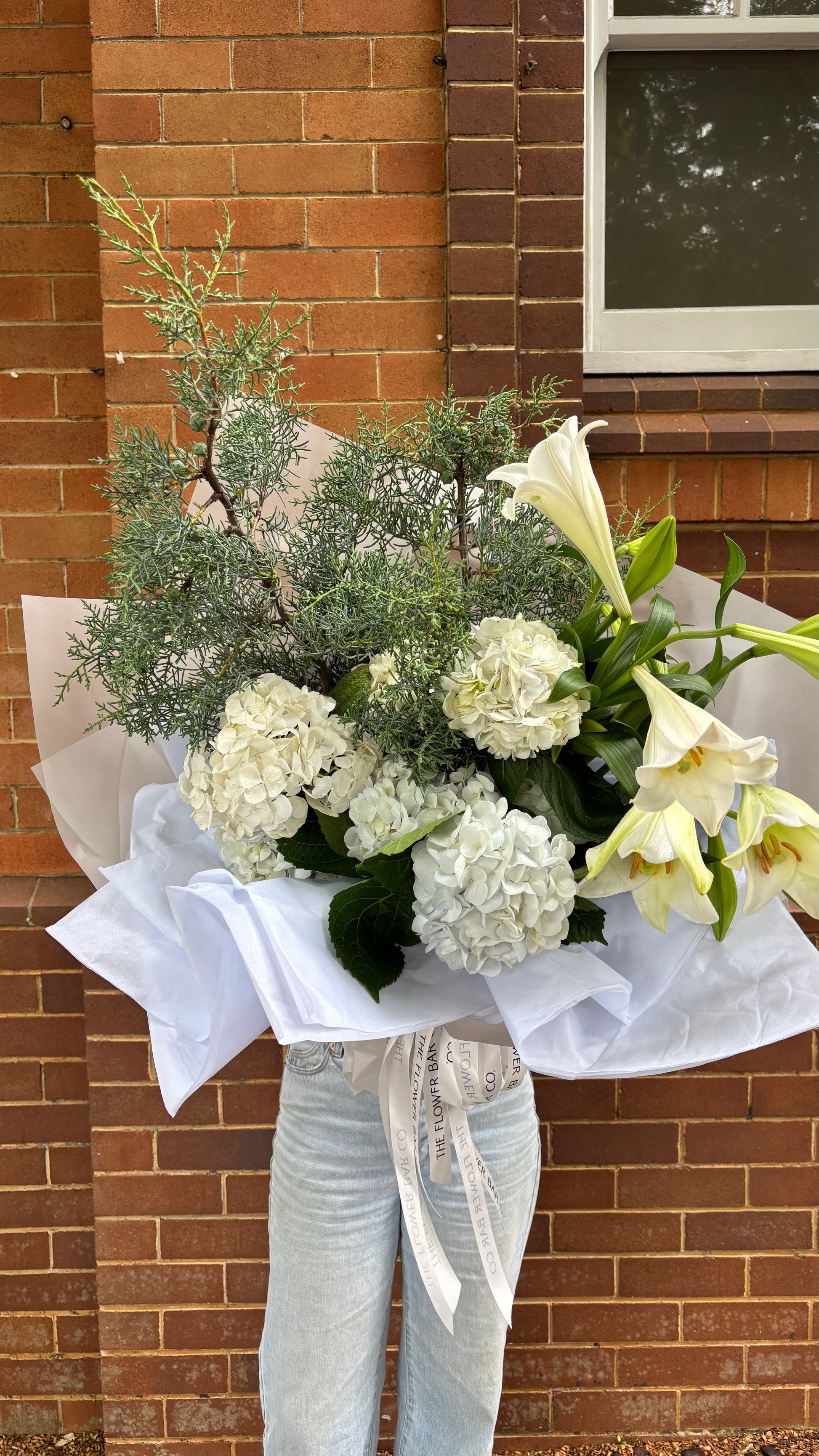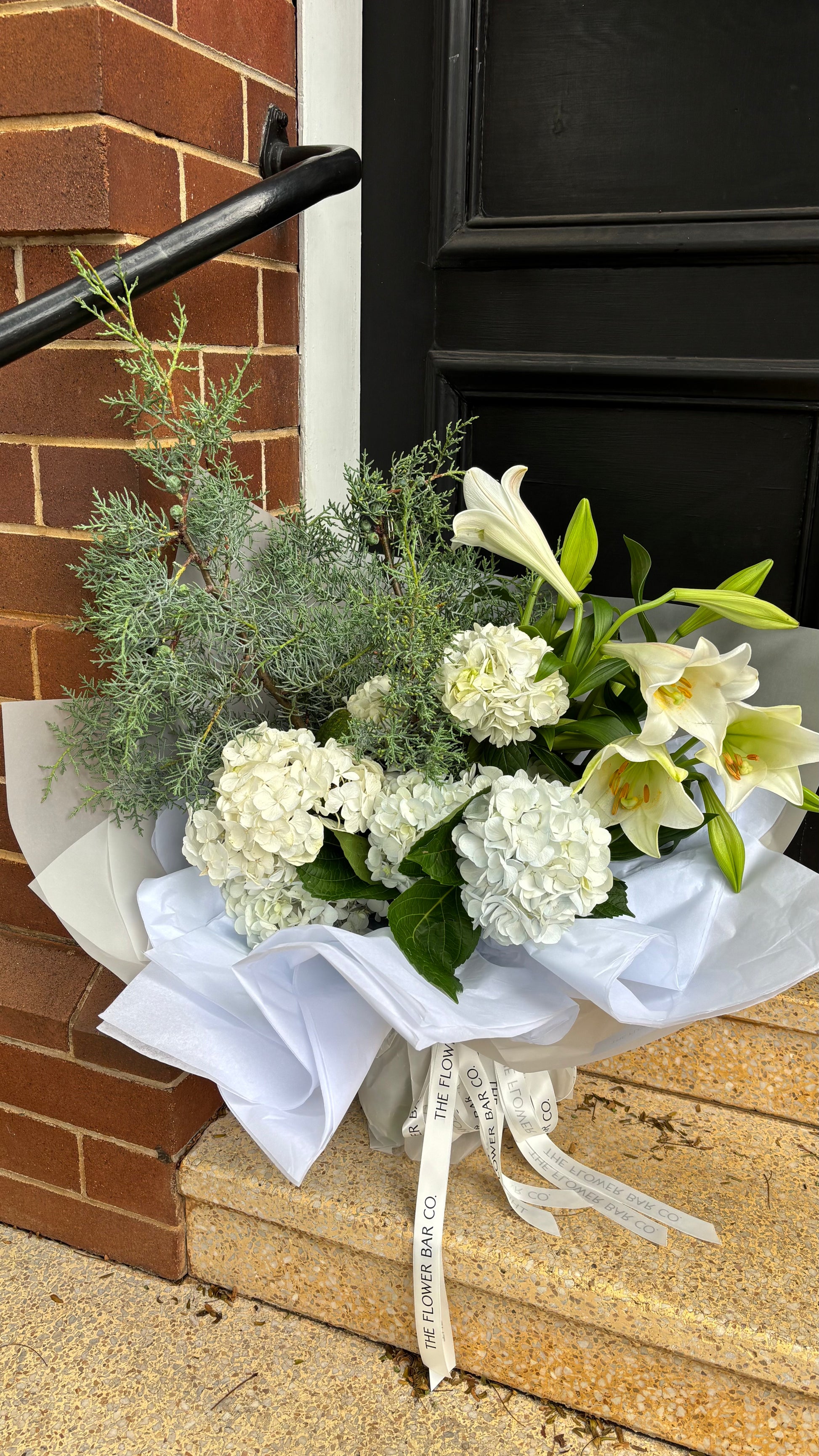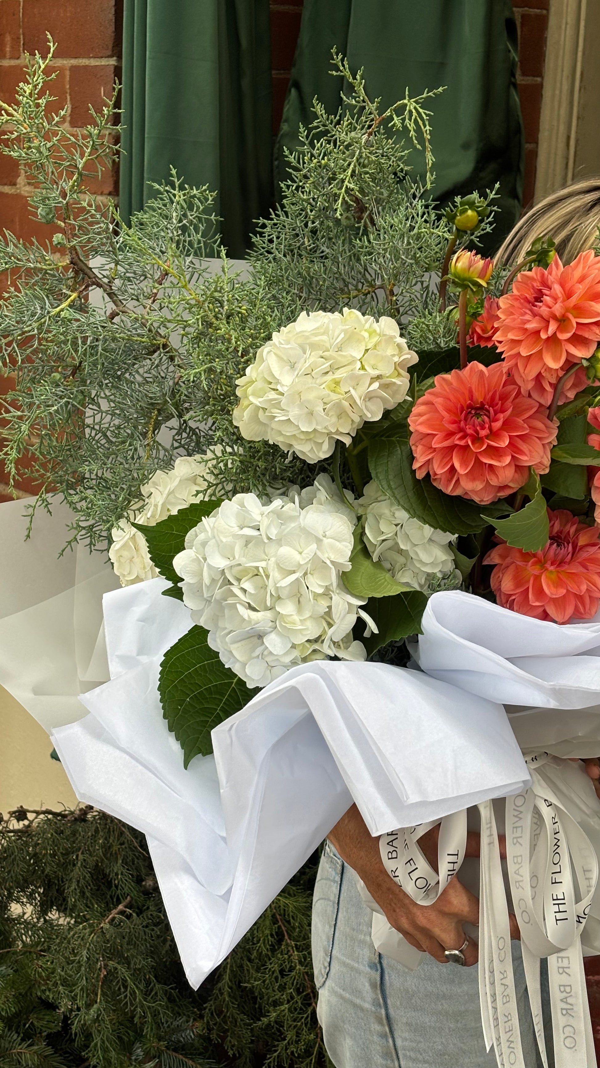 Please note: Flower varieties may vary depending on seasonal availability. Each arrangement is uniquely made while maintaining the chosen colour palette and overall aesthetic.
