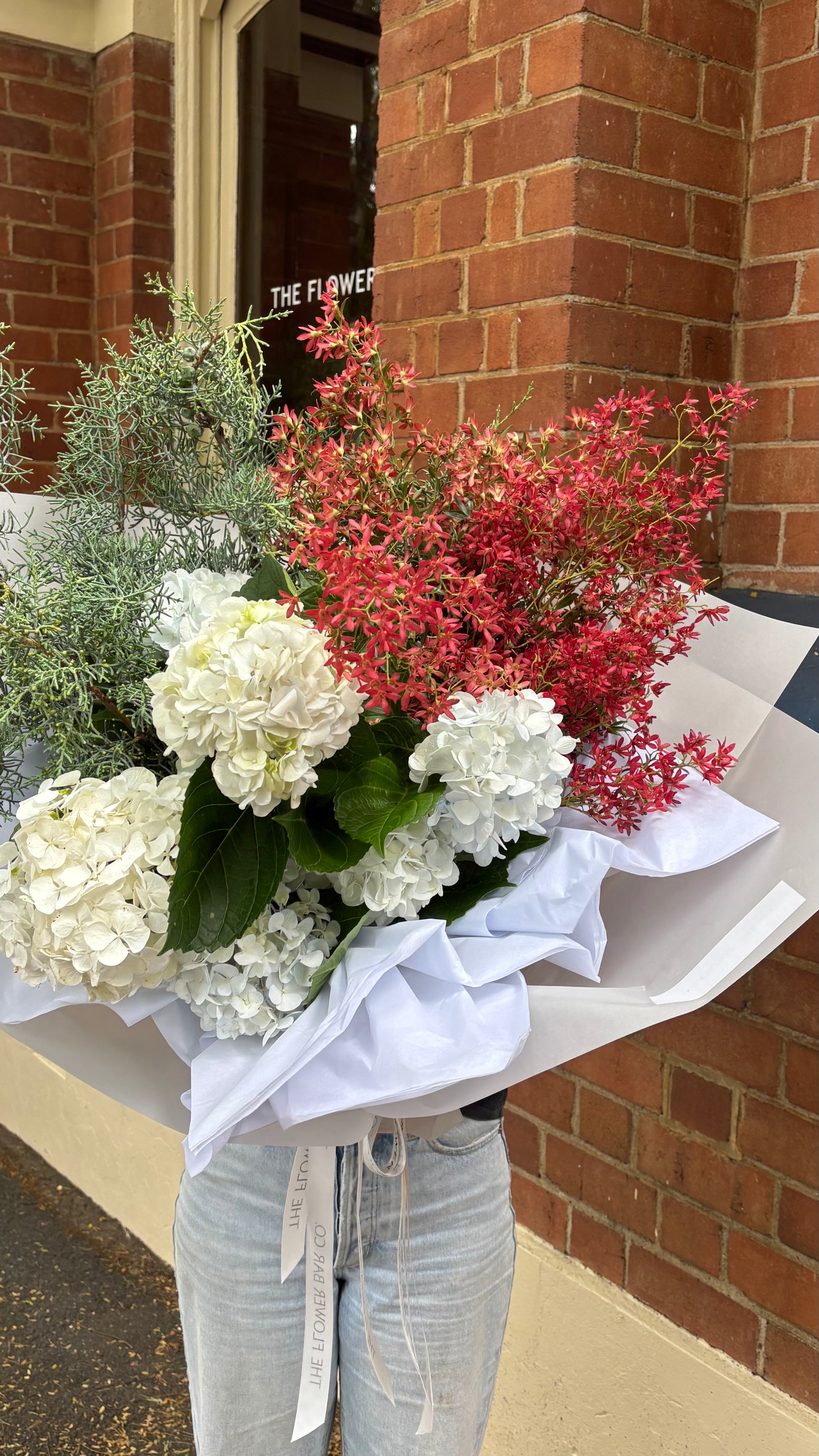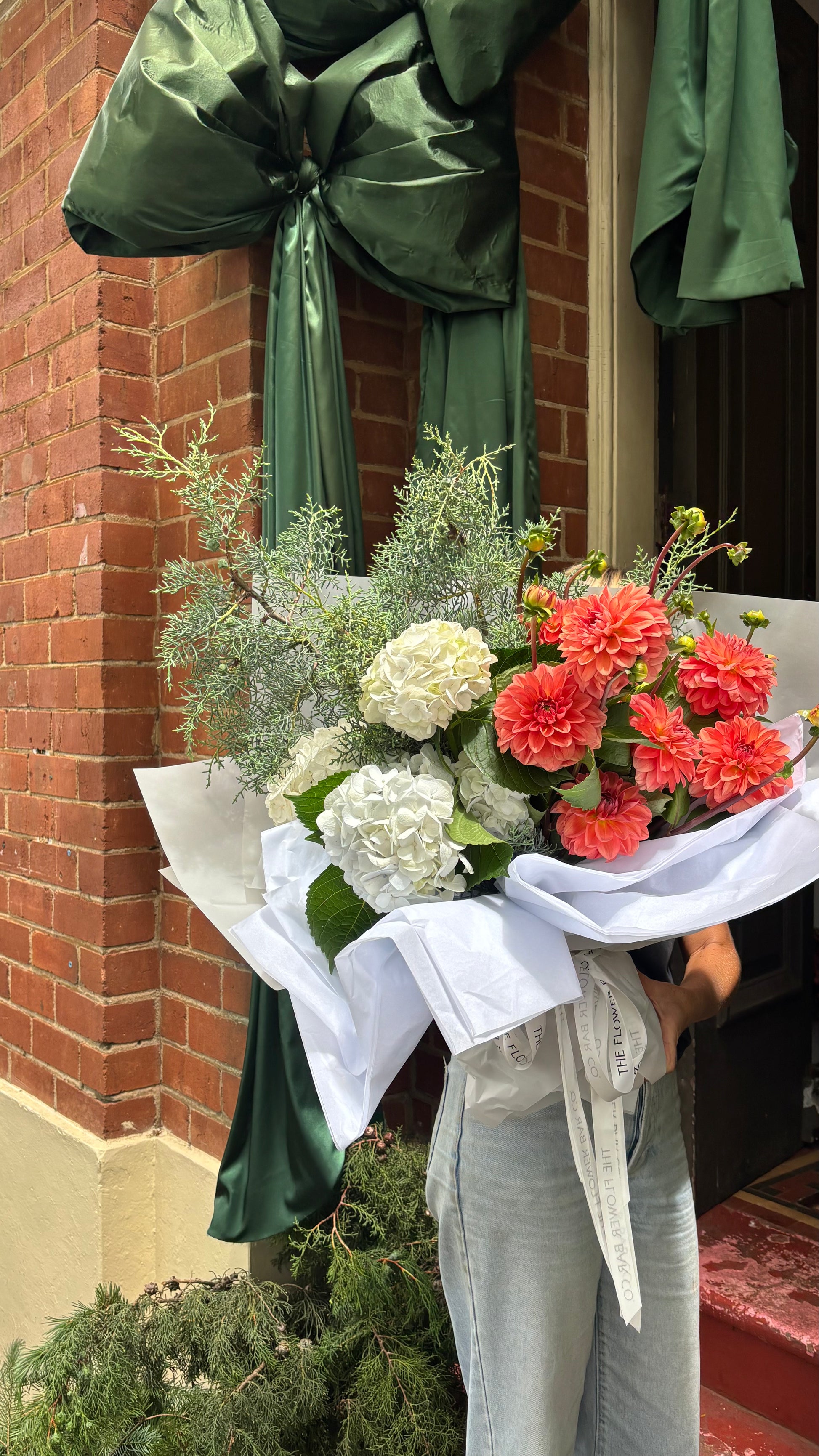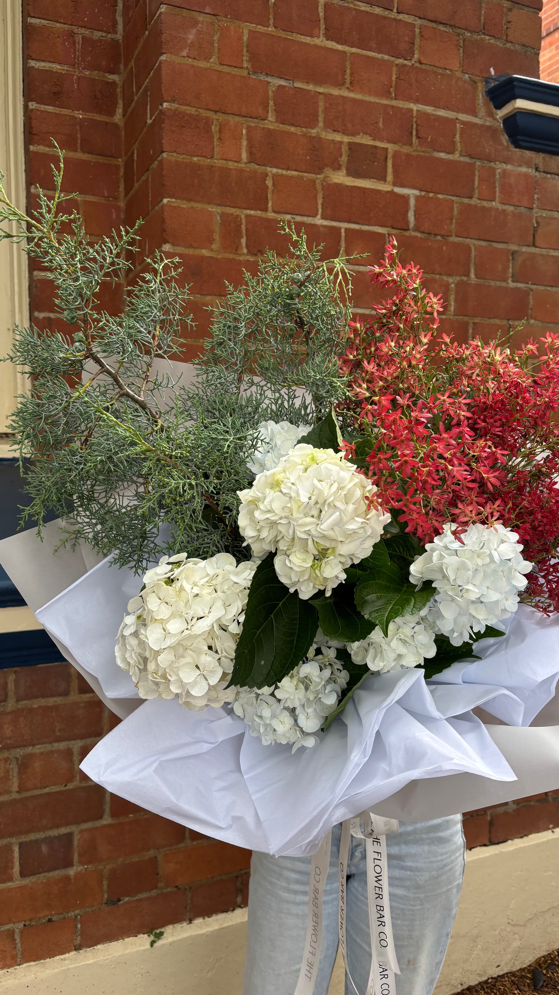 Thoughtfully created using seasonal Christmas inspired varieties, FESTIVE features a curated mix of lush foliages and blooms, styled in a modern, textural way that feels elevated. Each bouquet is handcrafted to highlight the best flowers available on the day, ensuring freshness, longevity and a beautifully natural finish.